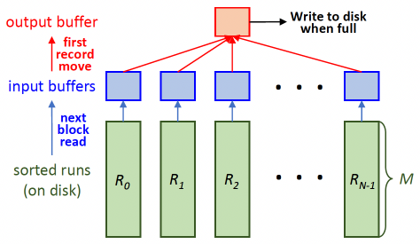 • Double buffering: ๊ฐ ์—ฐ์‚ฐ์— ๋‘ ๊ฐœ์˜ output buffer ์‚ฌ์šฉ, ํ•˜๋‚˜๊ฐ€ ์ฐจ๋ฉด disk์— ์“ฐ๋Š” ๋™์•ˆ ๋‹ค๋ฅธ ํ•˜๋‚˜ ์ฑ„์šฐ๊ธฐ